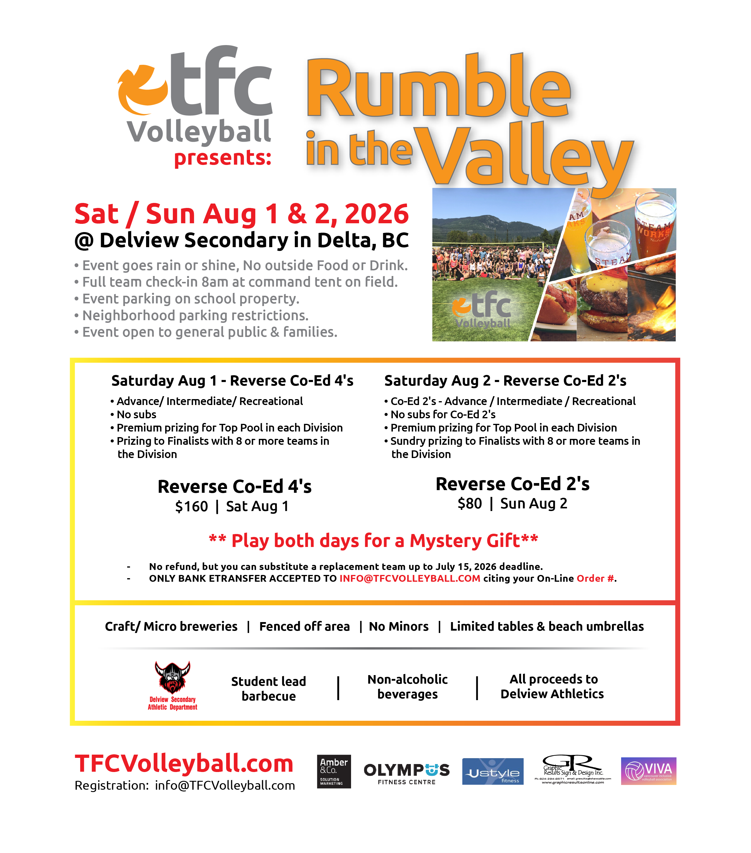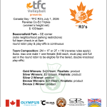We are seeking Summer Grass League Coordinators. Send CV to info@TFCVolleyball.com. MUST have own vehicle.On-Line Grass League registration commences March 1st. Bank ETransfer due within 2 calendar days of registration. 10 week Grass Leagues all start Tues, May 19th.